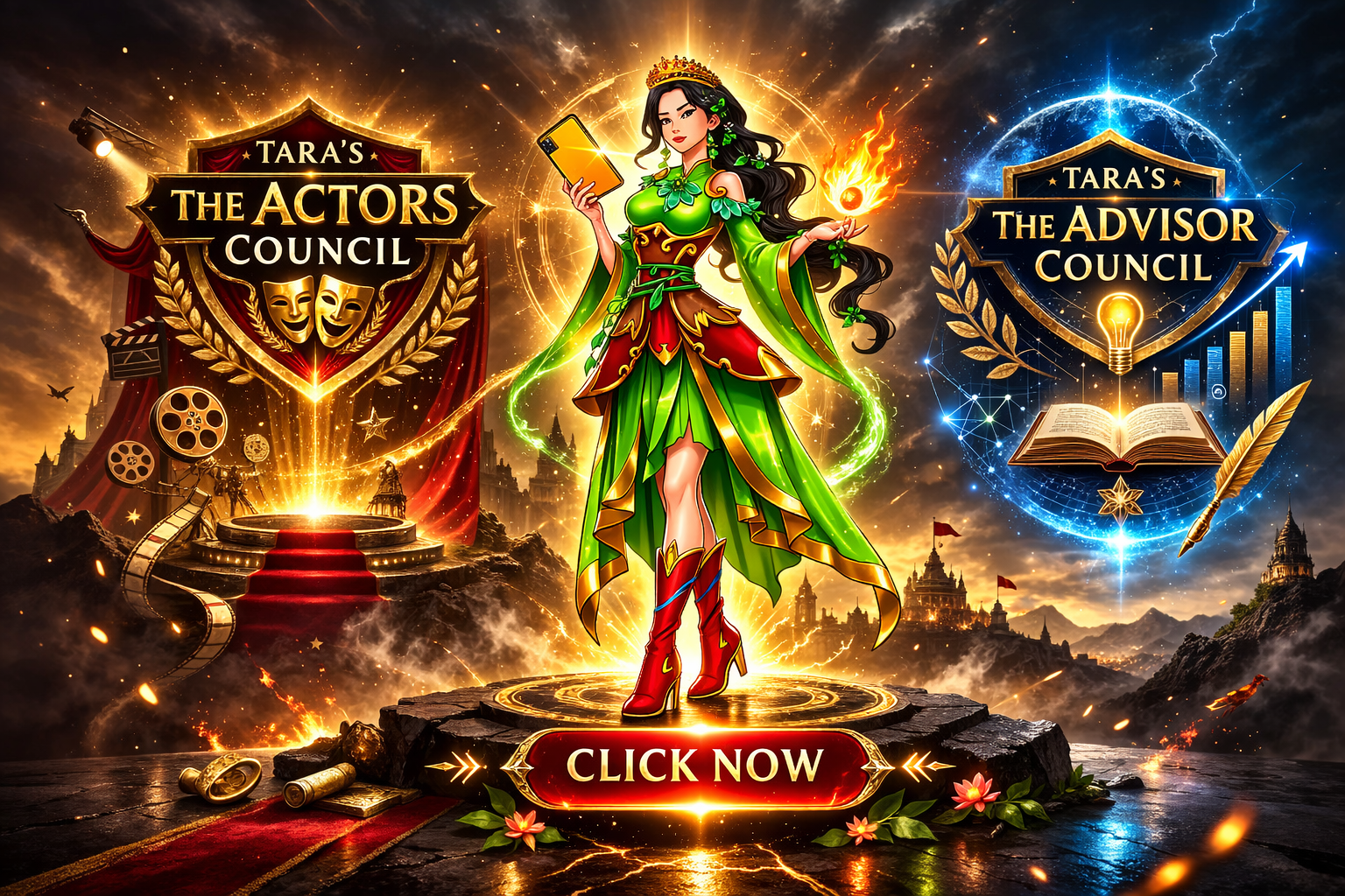 - PERMANENT ACTORS COUNCIL MEMBERS WILL HAVE A GAURANTEE TO HAVE A ROLE IN AN UPCOMING MOVIE (S) OF TARA – To Be Launched in London or in Hollywood.